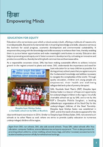 growth in the regions around its plants and mines. SAIL understands the importance and need for