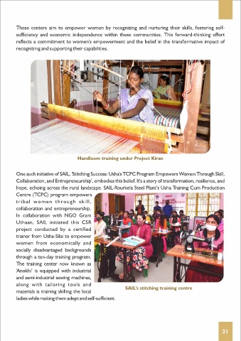hope, echoing across the rural landscape. SAIL-Rourkela Steel Plant’s Usha Training Cum Production