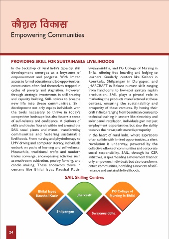 centers like Bhilai Ispat Kaushal Kutir, reliance and sustainable livelihoods.